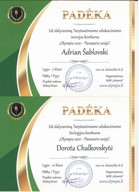 Padėkos, diplomai