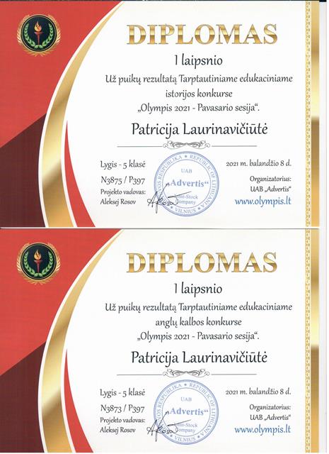 Padėkos, diplomai