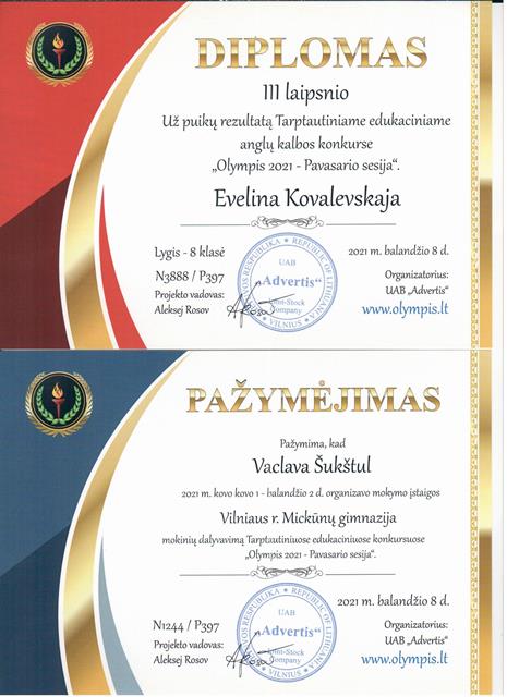 Padėkos, diplomai