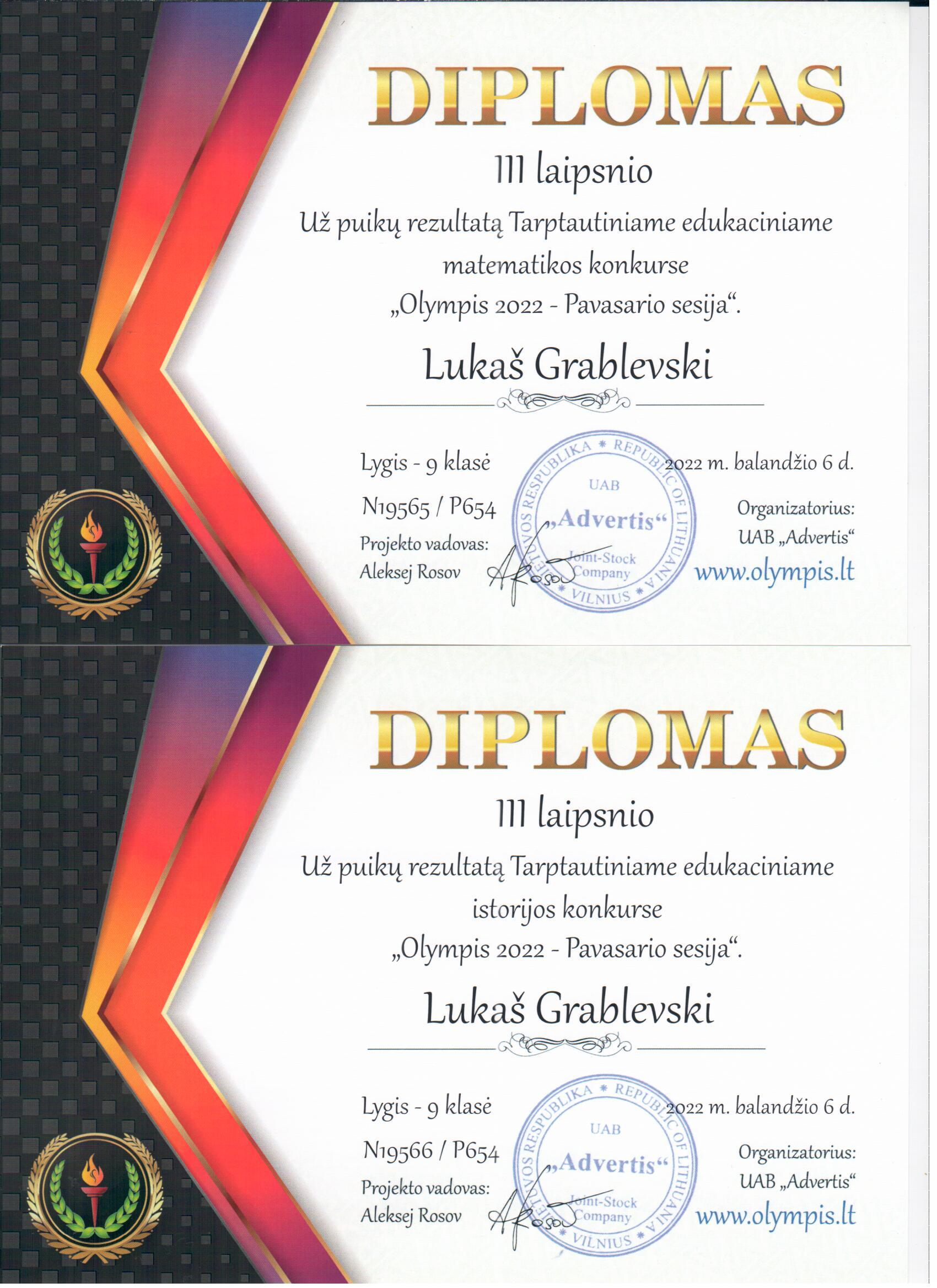 Padėkos, diplomai